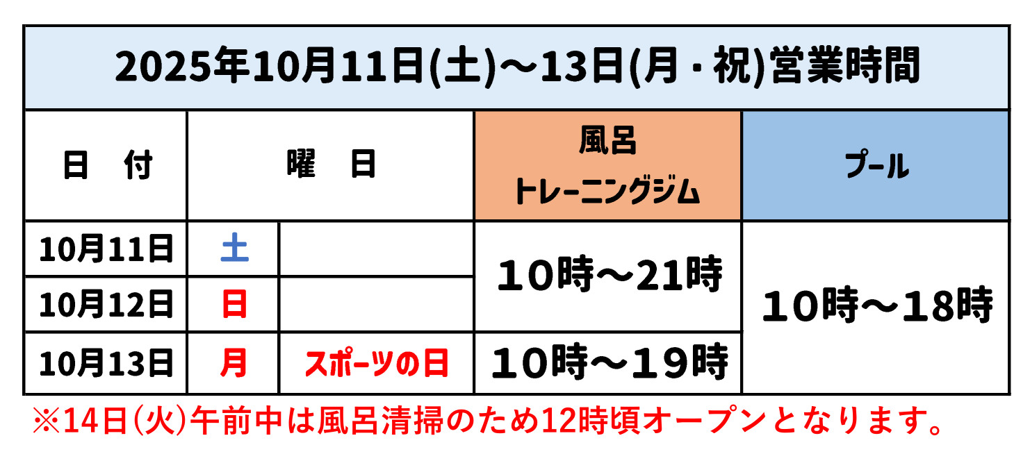 さて、今週末の10月11日~13日には3連休がありますので、営業時間のお知らせをさせていただきます。