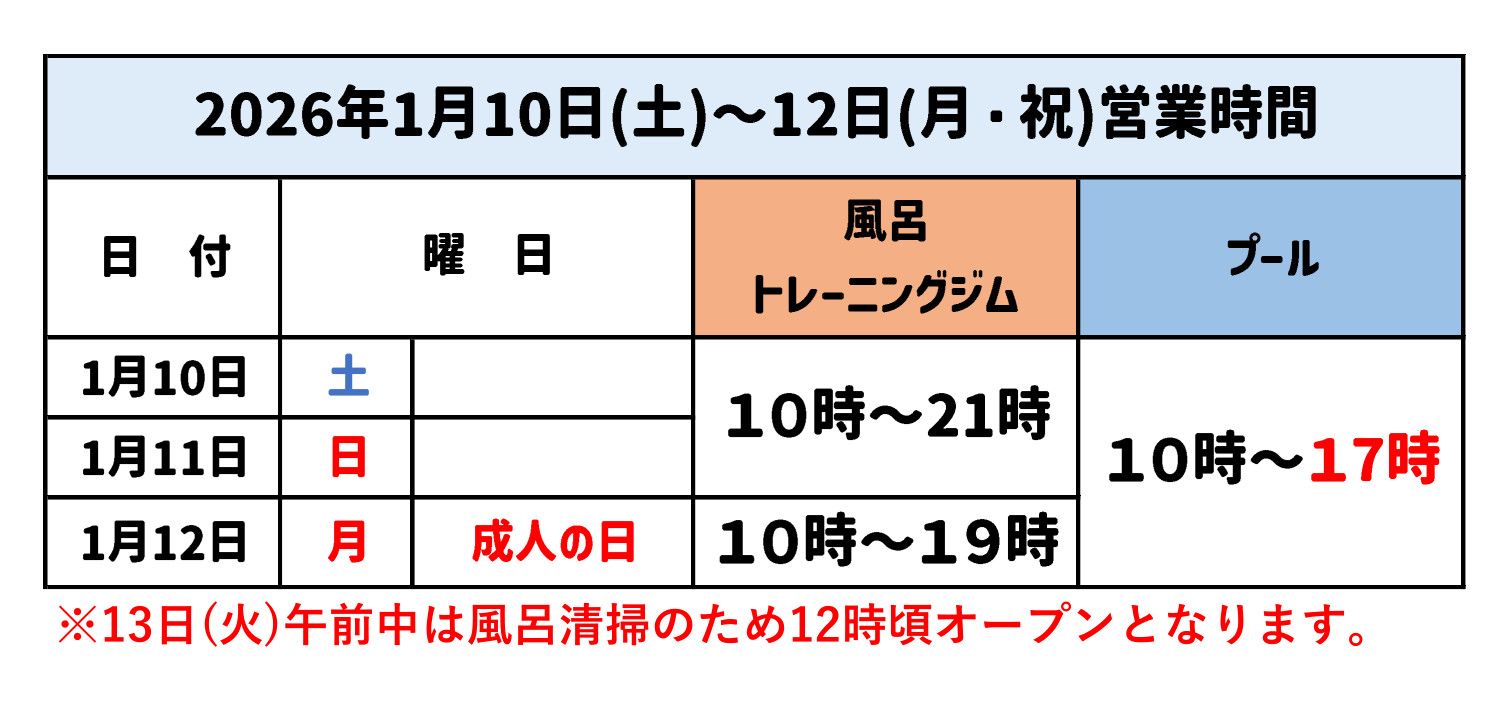 ※プール11月~3月まで冬季営業時間となりますので、お気をつけください。